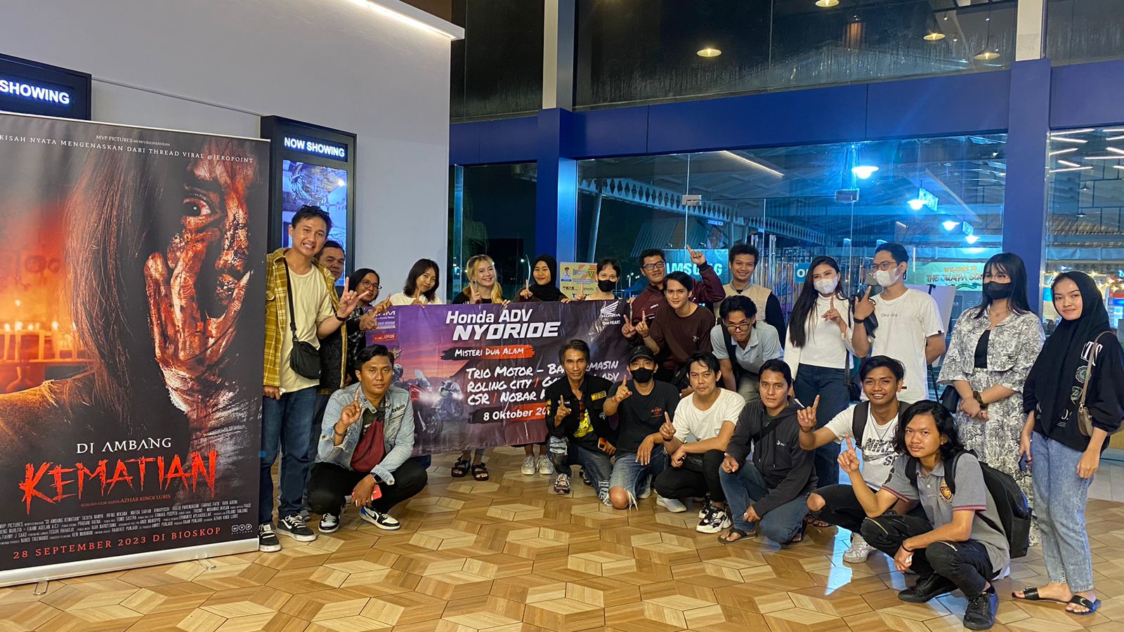 Kegiatan nonton bareng ini dimeriahkan oleh kurang lebih sekitar 25 orang anggota komunitas Honda ADV. Mereka terlihat antusias Ketika menonton film horror berjudul “Di Ambang Kematian”. Tak hanya para anggota komunitas yang hadir, Mustiar selaku PIC Community PT Trio Motor turut hadir memeriahkan kegiatan community gathering kali ini.