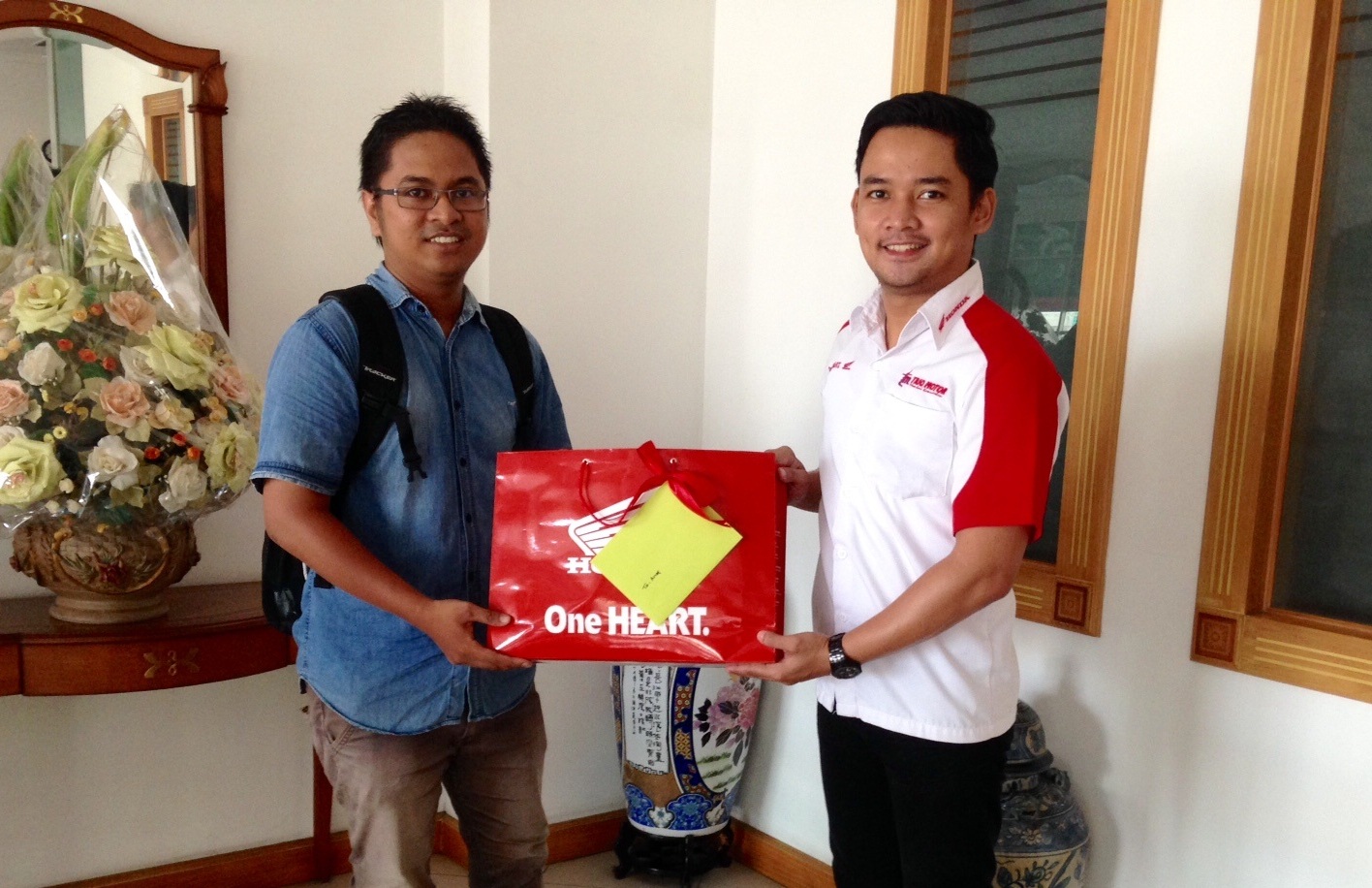 Banjarmasin- Dalam rangka menyambut Hari Raya Idul Fitri 1436H, PT Trio Motor selaku main dealer Honda untuk wilayah Kalimantan Selatan dan Tengah membagikan bingkisan lebaran untuk Wartawan Satu HATI, yakni rekan wartawan yang sering meliput kegiatan yang dilaksanakan oleh PT Trio Motor.